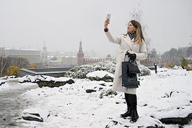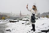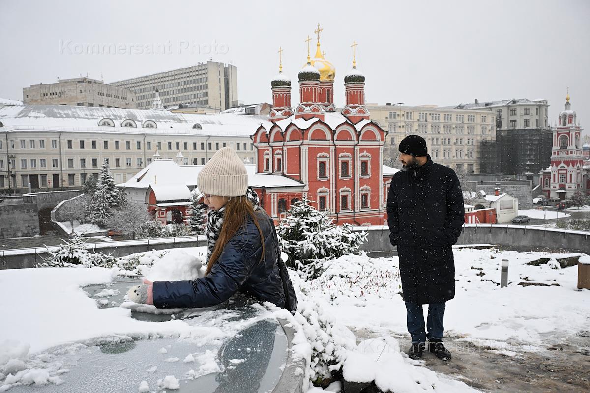 Жанровая фотография. Снегопад в городе. Посетители в парке "Зарядье".