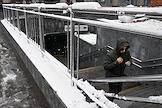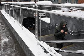 Жанровая фотография. Снегопад в городе. Мужчина выходит из подземного перехода станции Московского метрополитена "Китай-город".