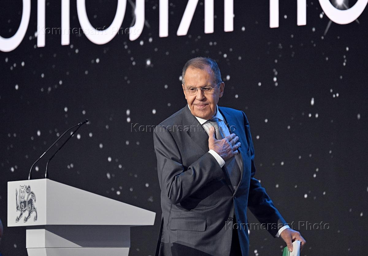 Международный научно-фантастический симпозиум "Создавая будущее" в Национальном центре "Россия" на территории Центрального выставочного комплекса "Экспоцентр". Министр иностранных дел России Сергей Лавров на симпозиуме.