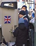 Церемония открытия выставки трофейной военной техники, прибывшей с харьковского и сумского направлений СВО, в музейно-историческом парке "Россия - Моя история". Посетители на выставке осматривают военную технику английского производства. Флаг Великобритании и эмблема НАТО на ветровом стекле боевой машины. Жанровая фотография.
