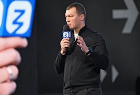 Федеральный просветительский марафон "Знание.Первые" в Музейно-выставочном объединении "Манеж". Министр спорта России Михаил Дегтярев во время выступления на тему "Спорт — норма жизни".
