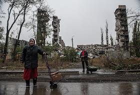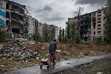 Виды Авдеевки. Женщина в квартире разрушенного жилого многоэтажного дома после обстрелов.