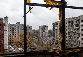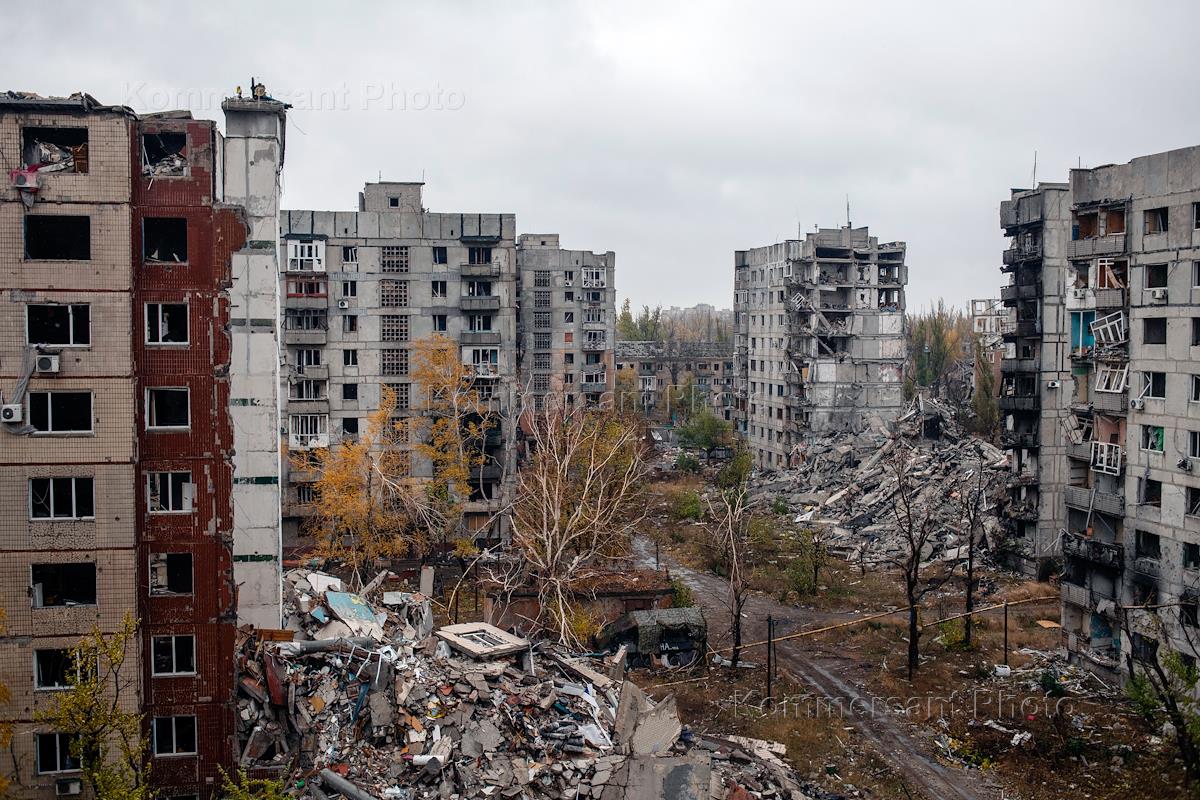 Виды Авдеевки. Разрушенные жилые многоэтажные дома после обстрелов.