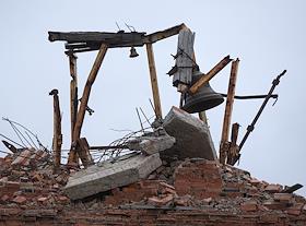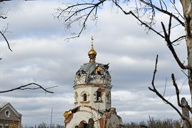Трасса "Донецк - Пески". Жанровая фотография. Разрушенный храм.