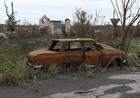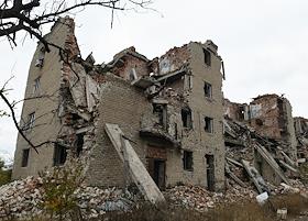 Трасса "Донецк - Пески". Жанровая фотография. Разрушенное здание.