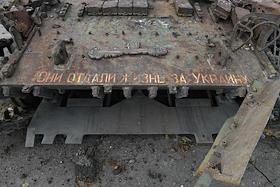 Трасса "Донецк - Пески". Жанровая фотография. Надпись на танке "Они отдали жизнь за Украину".