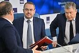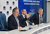Пресс-конференция, посвященная проведению VII Профессорского форума на тему "Образование, наука, семья – основы развития России", в пресс-центре ТАСС. Слева направо: председатель Российского профессорского собрания Владислав Гриб, заместитель министра науки и высшего образования России Константин Могилевский и ректор Российского экономического университета имени Г.В.Плеханова Иван Лобанов после пресс-конференции.