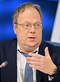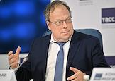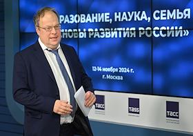 Пресс-конференция, посвященная проведению VII Профессорского форума на тему "Образование, наука, семья – основы развития России", в пресс-центре ТАСС. Заместитель министра науки и высшего образования России Константин Могилевский перед началом пресс-конференции.