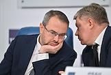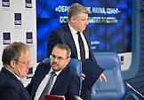 Пресс-конференция, посвященная проведению VII Профессорского форума на тему "Образование, наука, семья – основы развития России", в пресс-центре ТАСС. Заместитель министра науки и высшего образования России Константин Могилевский (слева) и ректор Российского экономического университета имени Г.В.Плеханова Иван Лобанов (справа) во время пресс-конференции.