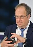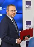 Пресс-конференция, посвященная проведению VII Профессорского форума на тему "Образование, наука, семья – основы развития России", в пресс-центре ТАСС. Ректор Российского экономического университета имени Г.В.Плеханова Иван Лобанов после пресс-конференции.
