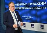 Пресс-конференция, посвященная проведению VII Профессорского форума на тему "Образование, наука, семья – основы развития России", в пресс-центре ТАСС. Заместитель министра науки и высшего образования России Константин Могилевский во время пресс-конференции.