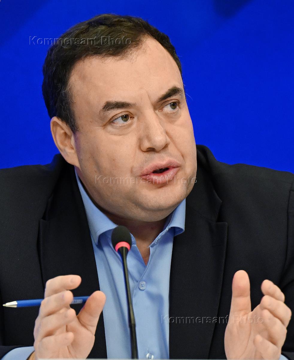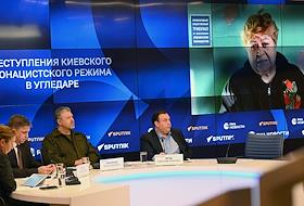 Пресс-конференция на тему: "Преступления киевского неонацистского режима в Угледаре" в МИА "Россия сегодня". Член Общественной палаты России Максим Григорьев во время пресс-конференции.