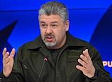 Пресс-конференция на тему: "Преступления киевского неонацистского режима в Угледаре" в МИА "Россия сегодня". Член Общественной палаты России Максим Григорьев во время пресс-конференции.