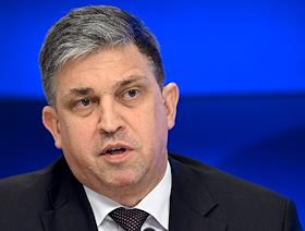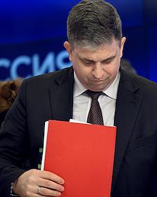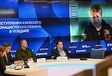 Пресс-конференция на тему: "Преступления киевского неонацистского режима в Угледаре" в МИА "Россия сегодня". Заместитель руководителя рабочего аппарата Уполномоченного по правам человека в России Сергей Футо во время пресс-конференции.