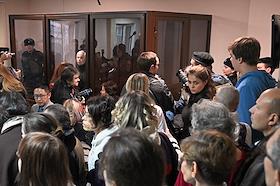 Заседание суда по делу врача-педиатра московской детской поликлиники №140 Надежды Буяновой, обвиняемой в распространении заведомо ложной информации об армии России, в Тушинском районном суде.