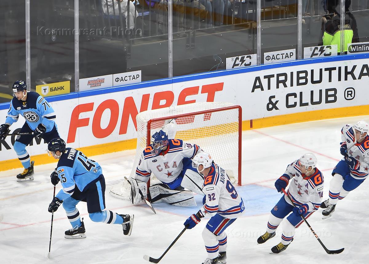 Континентальная Хоккейная Лига (КХЛ). Чемпионат сезона 2024/25. Матч между командами "Сибирь" (Новосибирск) и СКА (Санкт-Петербург) на стадионе "Сибирь-Арена".