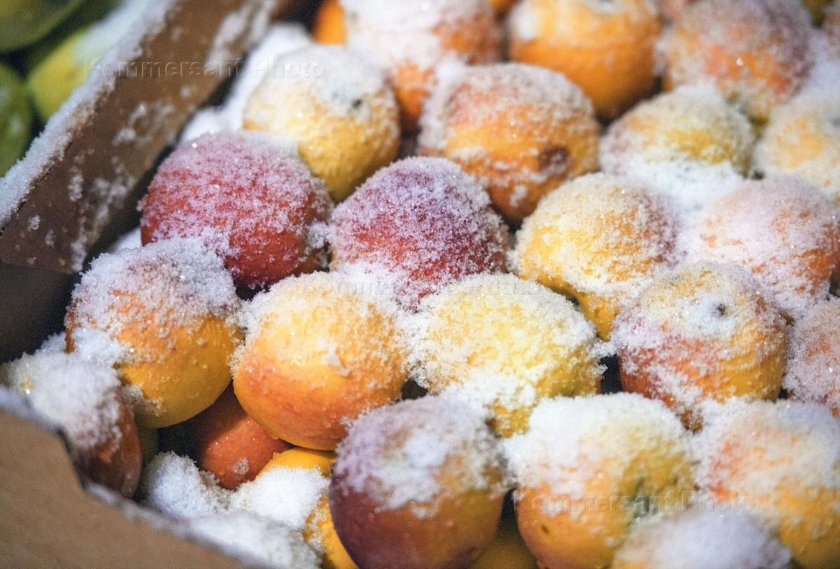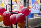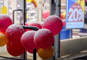 Views of Kazan after the snowfall. Genre photography. Snow on balloons.