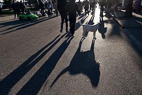 Виды Абхазии. Жанровая фотография. Мальчик во время прогулки с собакой по парку.