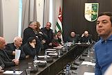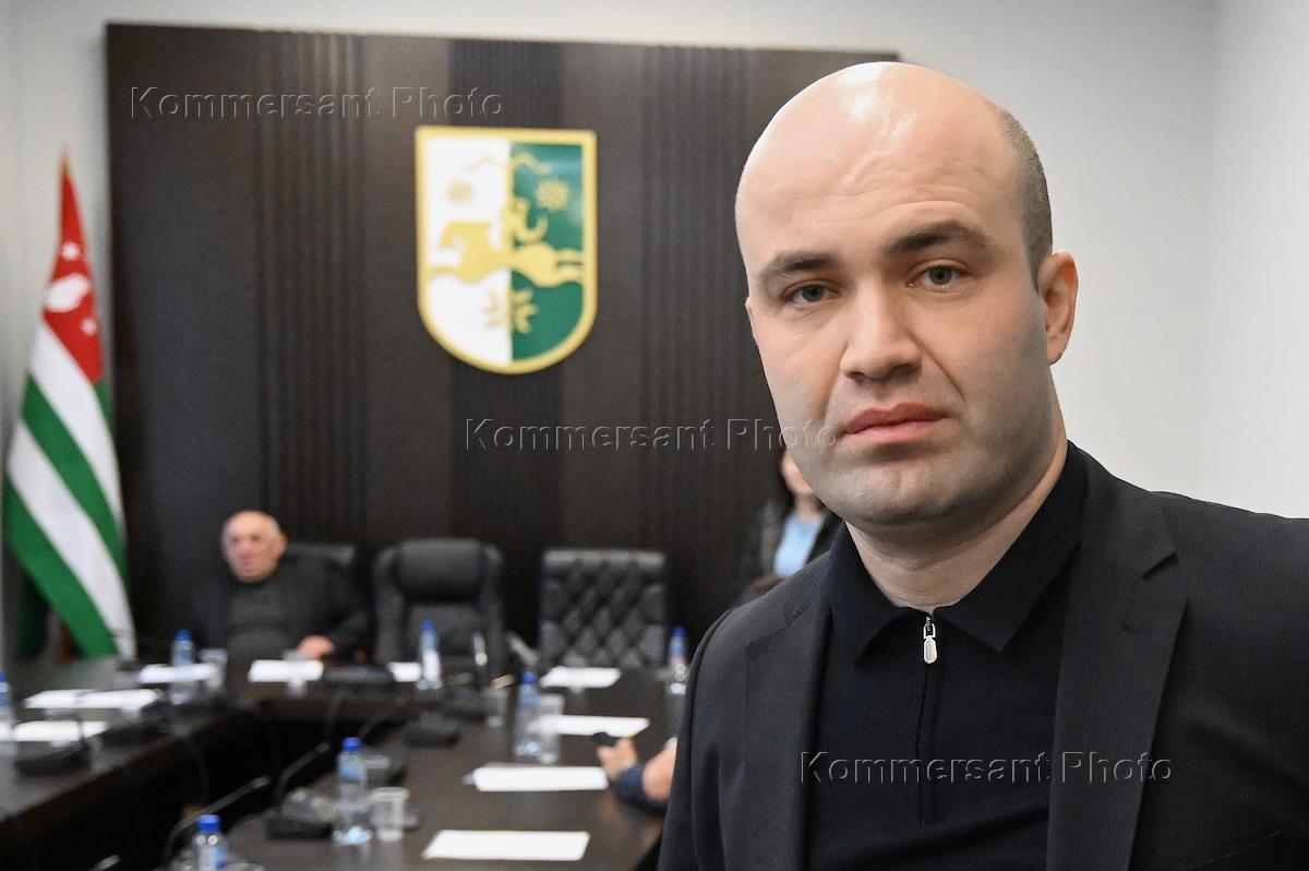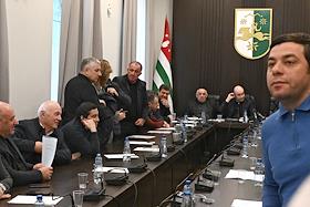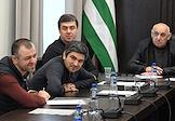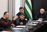 Заседание сессии Народного Собрания – парламента Республики Абхазия. Спикер парламента Абхазии Лаша Ашуба (в центре) во время заседания.