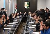 Заседание сессии Народного Собрания – парламента Республики Абхазия. Депутаты во время голосования.