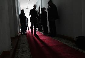 Заседание сессии Народного Собрания – парламента Республики Абхазия. Жанровая фотография. Депутаты в коридоре после заседания.