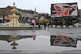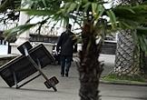 Виды Абхазии. Жанровая фотография. Сломанный во время протестной акции забор у здания Администрации президента Республики Абхазии.