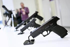 XXVIII Международная выставка средств обеспечения безопасности государства "ИНТЕРПОЛИТЕХ" в выставочном комплексе "Тимирязев центр". Жанровая фотография. Посетители на стенде группы компаний "Калашников".