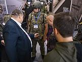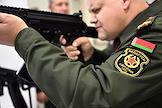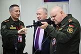 XXVIII Международная выставка средств обеспечения безопасности государства "ИНТЕРПОЛИТЕХ" в выставочном комплексе "Тимирязев центр". Жанровая фотография. Военнослужащие Министерства обороны Белоруссии на выставке.