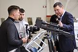 XXVIII Международная выставка средств обеспечения безопасности государства "ИНТЕРПОЛИТЕХ" в выставочном комплексе "Тимирязев центр". Жанровая фотография. Курсант Военно-воздушной академии имени профессора Н. Е. Жуковского и космонавта Ю. А. Гагарина на выставке.
