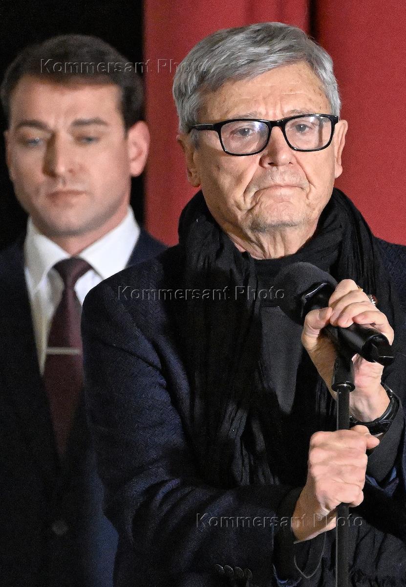 Farewell ceremony for actress Svetlana Svetlichnaya in the White Hall of the Cinema House. Actor Boris Tokarev during the ceremony.