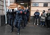Farewell ceremony for actress Svetlana Svetlichnaya in the White Hall of the Cinema House. Svetlana Svetlichnaya's son Alexey Ivashov (third from right) and his daughter Maria (second from left) during the ceremony.