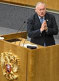 Пленарное заседание Государственной думы (ГД) России. Председатель комитета ГД России по делам Содружества Независимых Государств, евразийской интеграции и связям с соотечественниками Леонид Калашников во время заседания.