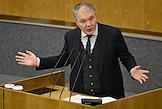 Пленарное заседание Государственной думы (ГД) России. Первый заместитель председателя комитета ГД России по делам Содружества Независимых Государств, евразийской интеграции и связям с соотечественниками Константин Затулин во время заседания.