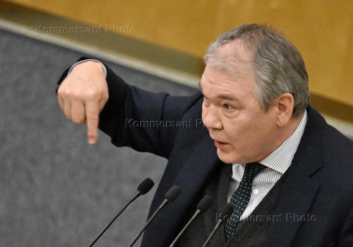 Пленарное заседание Государственной думы (ГД) России. Заместитель председателя комитета ГД России по обороне Юрий Швыткин во время заседания.