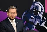 XI Международная неделя авиакосмических технологий Aerospace Science Week в Главном учебном корпусе МАИ. Проректор по образованию Университета науки и технологий МИСИС Антон Воронин во время заседания.
