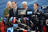 Пленарное заседание Государственной думы (ГД) России. Жанровая фотография. Камеры телеканалов во время пресс-конференции депутатов ГД России перед началом заседания.
