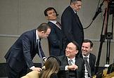 Пленарное заседание Государственной думы (ГД) России. Слева направо (в последнем ряду): член комитета ГД России по вопросам собственности, земельным и имущественным отношениям Андрей Дорошенко, заместитель председателя комитета ГД России по обороне Юрий Швыткин, член комитета ГД России по строительству и жилищно-коммунальному хозяйству Марат Нуриев и член комитета ГД России по энергетике Муслим Татриев во время заседания.
