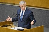 Пленарное заседание Государственной думы (ГД) России. Председатель комитета ГД России по защите конкуренции Валерий Гартунг во время выступления на заседании.