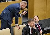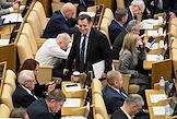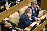 Пленарное заседание Государственной думы (ГД) России. Член комитета ГД России по экономической политике Александр Максимов (слева) во время заседания.