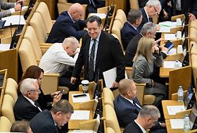 Пленарное заседание Государственной думы (ГД) России. Член комитета ГД России по физической культуре, спорту и делам молодежи Сергей Чепиков во время заседания.