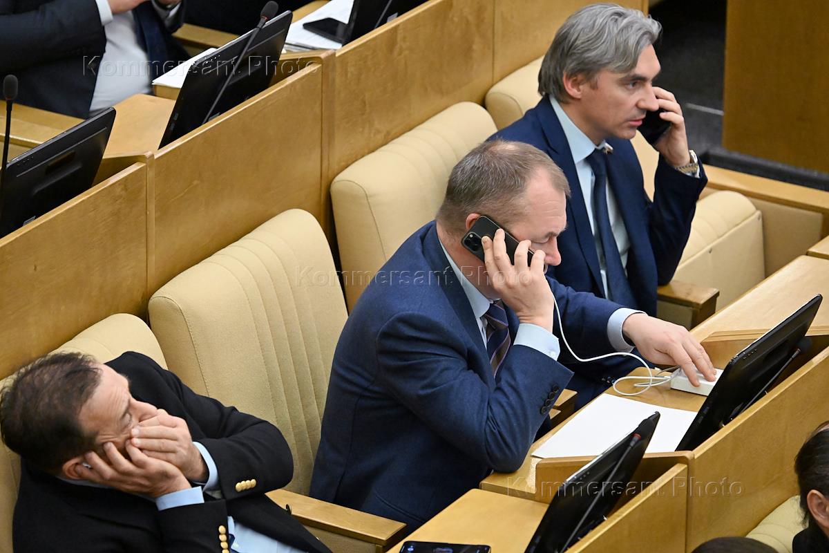 Пленарное заседание Государственной думы (ГД) России. Депутаты во время заседания.