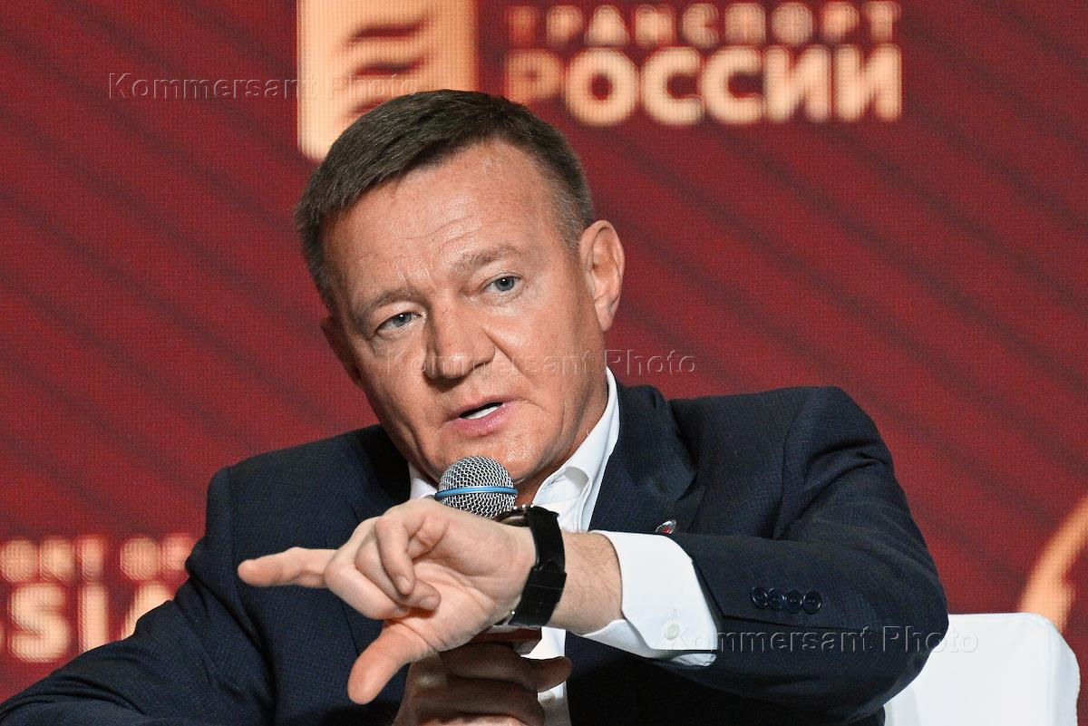 Международный форум и выставка "Транспорт России" в Московском Гостином дворе. Диалог Российского общества "Знание" и министра транспорта России Романа Старовойта "Умный, быстрый, экологичный: транспорт будущего". Министр транспорта России Роман Старовойт во время диалога.