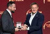 Международный форум и выставка "Транспорт России" в Московском Гостином дворе. Диалог Российского общества "Знание" и министра транспорта России Романа Старовойта "Умный, быстрый, экологичный: транспорт будущего". Министр транспорта России Роман Старовойт (справа) во время диалога.