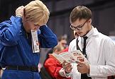 Фестиваль видеоигровой индустрии "Игропром" на площадке Main Stage. Игротека от магазина настольных игр Hobby Games. Гости фестиваля во время игры.