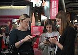 Форум-выставка "Город. Карьера. Бизнес" на площадке "Старт Хаб" в арт-пространстве "Красный Октябрь". Жанровая фотография. Стенд SuperJob Старт / Работа для студентов и молодых специалистов.