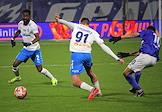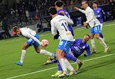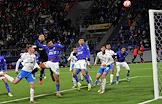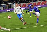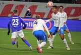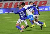 Мир Российская Премьер-Лига (РПЛ) 2024/2025. 16-й тур. Матч между командами "Факел" (Воронеж) - "Динамо" (Москва) на стадионе "Факел". Игрок команды "Динамо" Эль-Мехди Маухуб (в центре) и игрок команды "Факел" Дилан Мертенс (справа) во время матча.