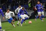 Мир Российская Премьер-Лига (РПЛ) 2024/2025. 16-й тур. Матч между командами "Факел" (Воронеж) - "Динамо" (Москва) на стадионе "Факел". Игрок команды "Динамо" Артур Гомес (в центре), игроки команды "Факел" Вячеслав Якимов (слева) и Ираклий Квеквескири (справа) во время матча.