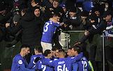 Мир Российская Премьер-Лига (РПЛ) 2024/2025. 16-й тур. Матч между командами "Факел" (Воронеж) - "Динамо" (Москва) на стадионе "Факел". Игроки команды "Факел" и болельщики команды после матча.