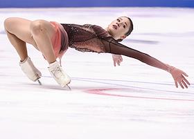 Пятый этап серии Гран-при России 2024/2025 по фигурному катанию "Невский лед" в спортивном комплексе "Юбилейный". Женское одиночное катание. Произвольная программа. Фигуристка Алина Горбачева во время выступления.