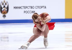 Пятый этап серии Гран-при России 2024/2025 по фигурному катанию "Невский лед" в спортивном комплексе "Юбилейный". Женское одиночное катание. Произвольная программа. Фигуристка Софья Муравьева во время выступления.